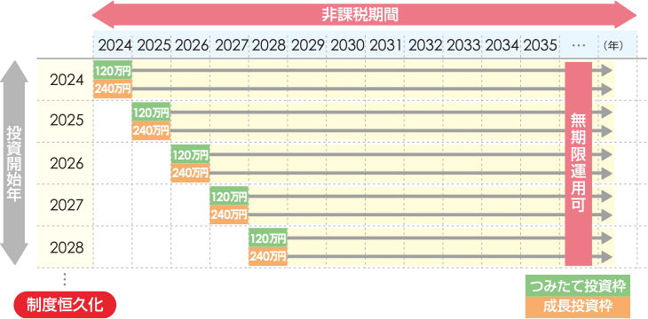 非課税保有期間が、無期限化(恒久化)され、より長期的な投資が可能。